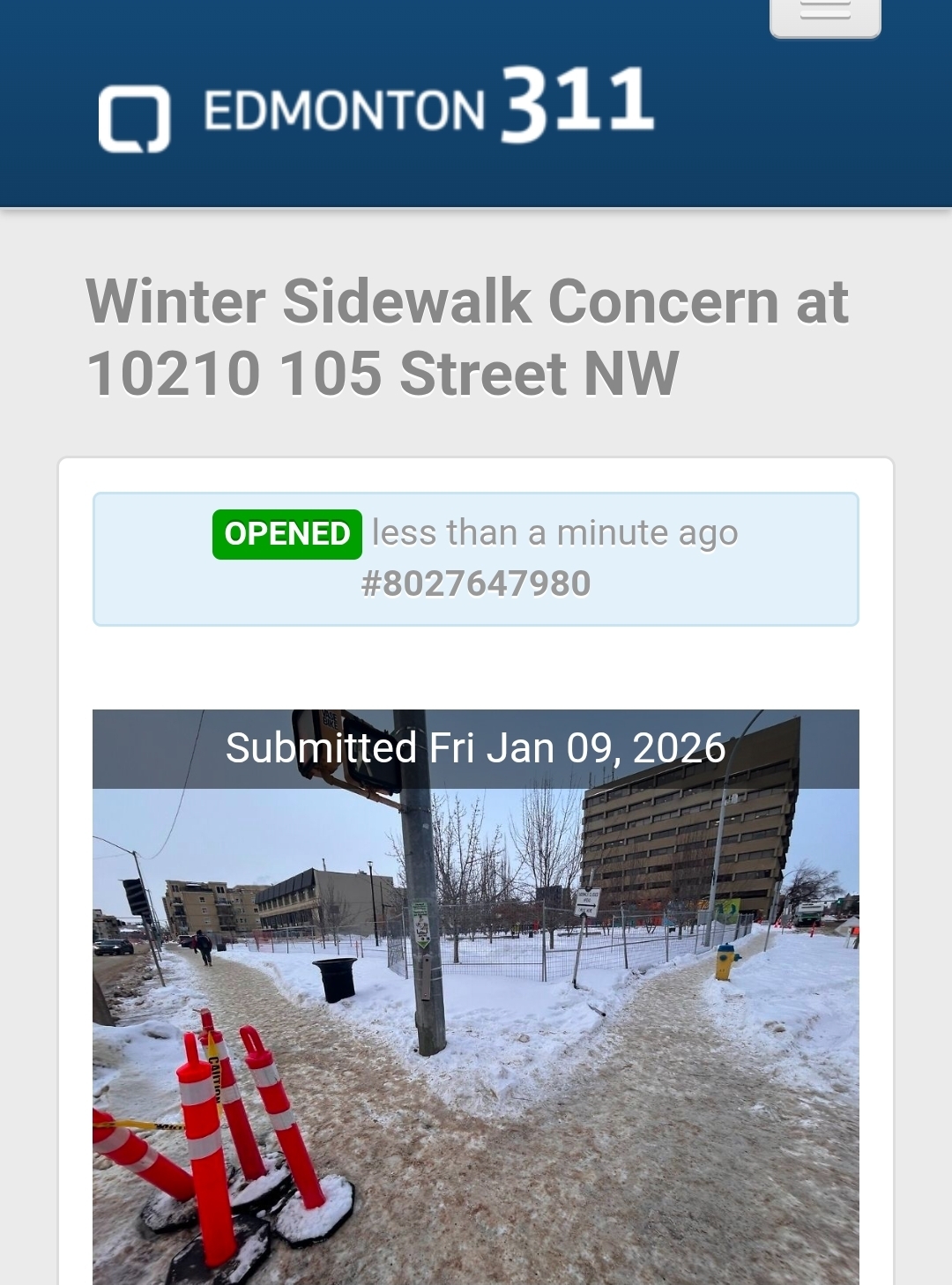 TAS said: Not sure if you submitted to 311, so I just did. View attachment 707775 Click to expand... Snow gone from sidewalk. 2 days ago