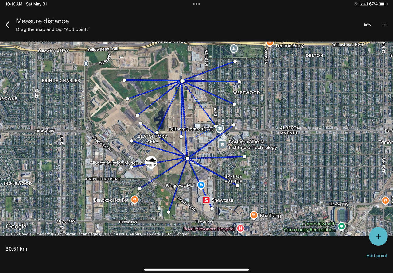 What 800m looks like in blatchford. Very good coverage. If they add in safe secure bike parking at the stations even better. Otherwise Kingsway ave has busses dropping you at the royal alex in a few stops. Also opens a lot of possibilities for infill/density in Westwood along 107st. And also, this alignment was chosen for where it will cross the rail yard and continue north along 113a ST.View attachment 655216