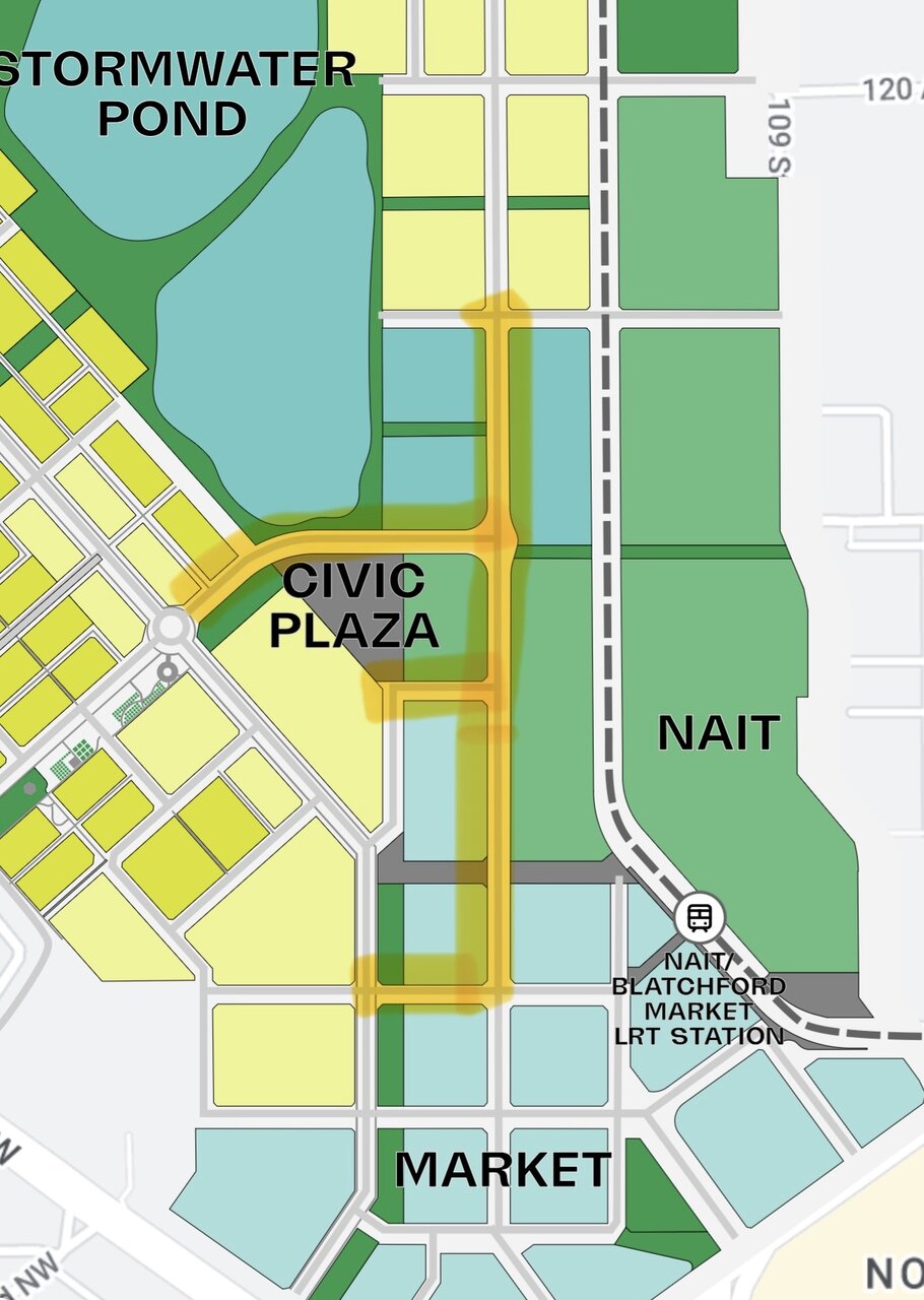 I tried to make sense of which roads they are currently paving. By paving I meant the curbs are mostly up and they’re still working on the base layer. 119 could be the first intersection built out into NAIT based on construction activity on both sides of the track but it’s still largely dirt at the moment.