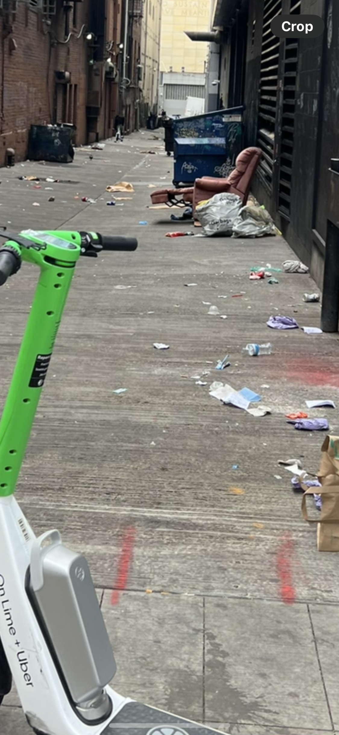 This image is the epitome of how bad their DT is. We passed this chair over a dozen times - an alley between 1st and 2nd Ave’s and Pike St. Everyone here knows where that alley is….behind the Hostel. This picture was the ONLY time we saw this recliner empty as 2 times the meat wagon hauled away 2 corpses and the rest of the times there was a “tweaked” out human being on it.