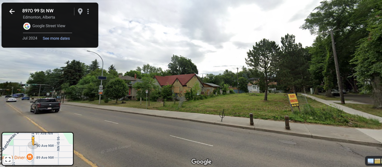 The north end of 99th Street leading onto Scona Road and into the river valley is a very nice commuter road. It's kind of like driving through a park to get downtown. Scona Road up to 82 Avenue is a prime corridor that has the right feel for some upscale midrise urban development.Yes please! I love how 99st is coming back and that enclave around 89-90 is taking off and returning to an amenity rich area.