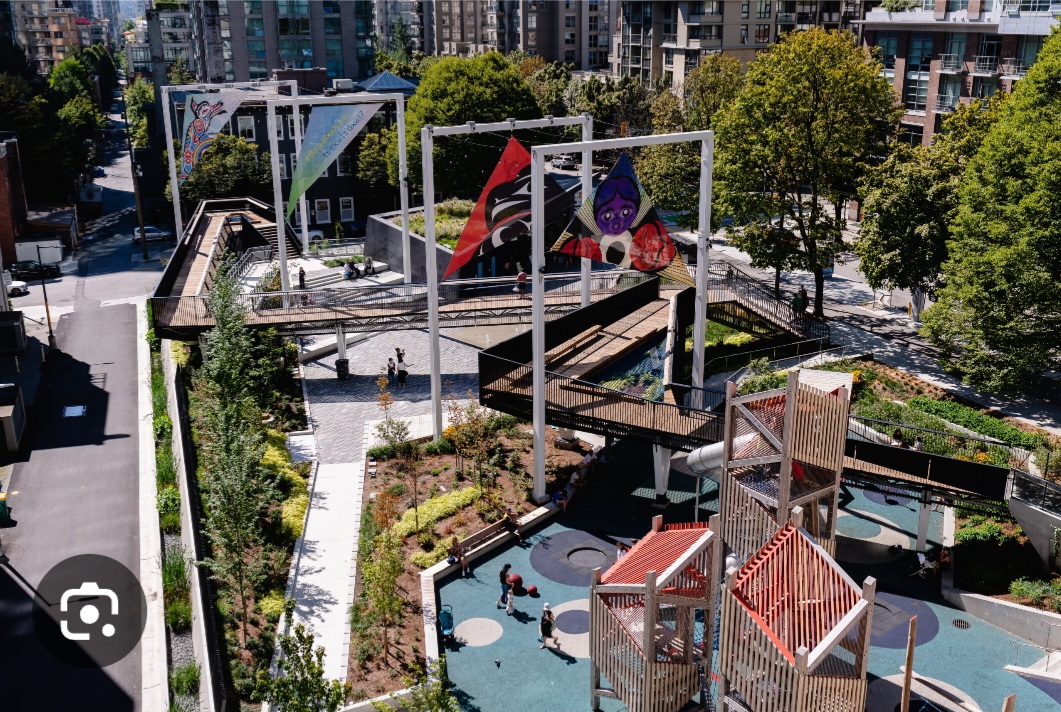 Vancouver's park also features a three tiered playground structure, public washrooms and there's a coffee shop.