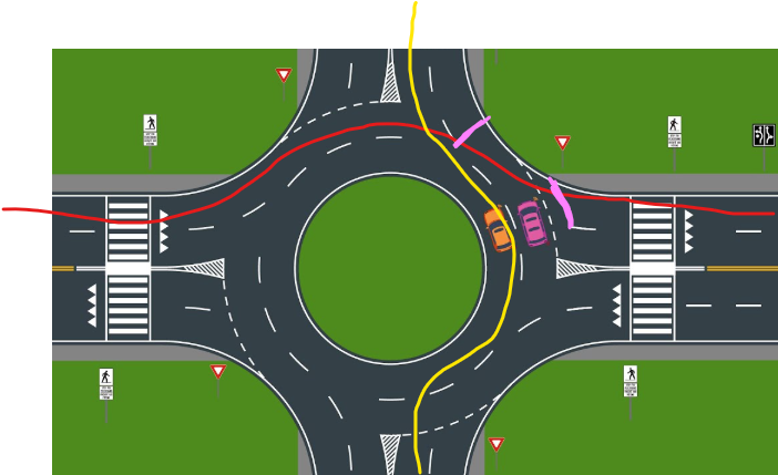 Technically, you’re right. In practice, though, that second yield would be heeded at the same time as the first yield before a car enters the roundabout.Yes, but inner-lane traffic exiting cuts across the direction of outer-lane traffic going through. That's what I'm describing.