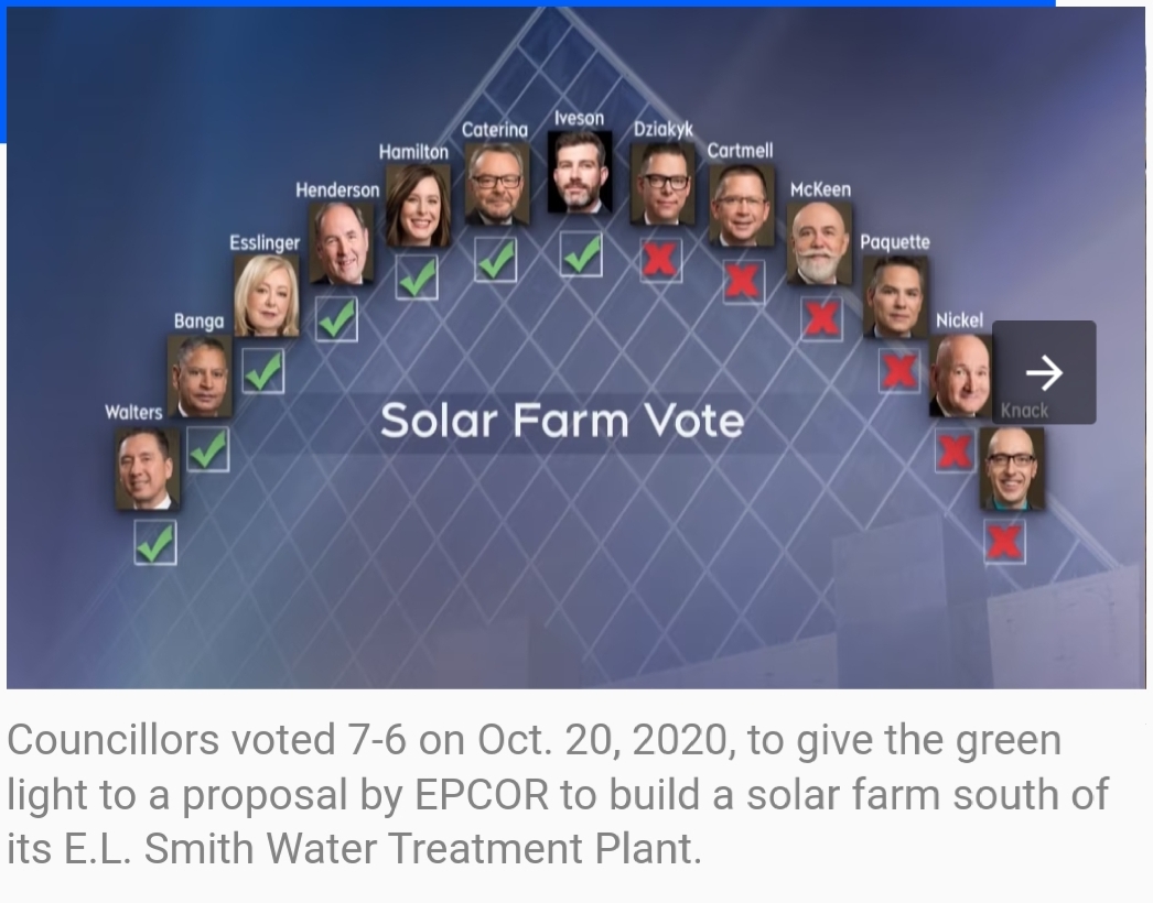 “Next to the water treatment plant, on land that is reserved for its expansion, that’s previously disturbed, on a temporary basis to help us achieve our climate goals... Makes sense to me,” Mayor Don Iveson said.