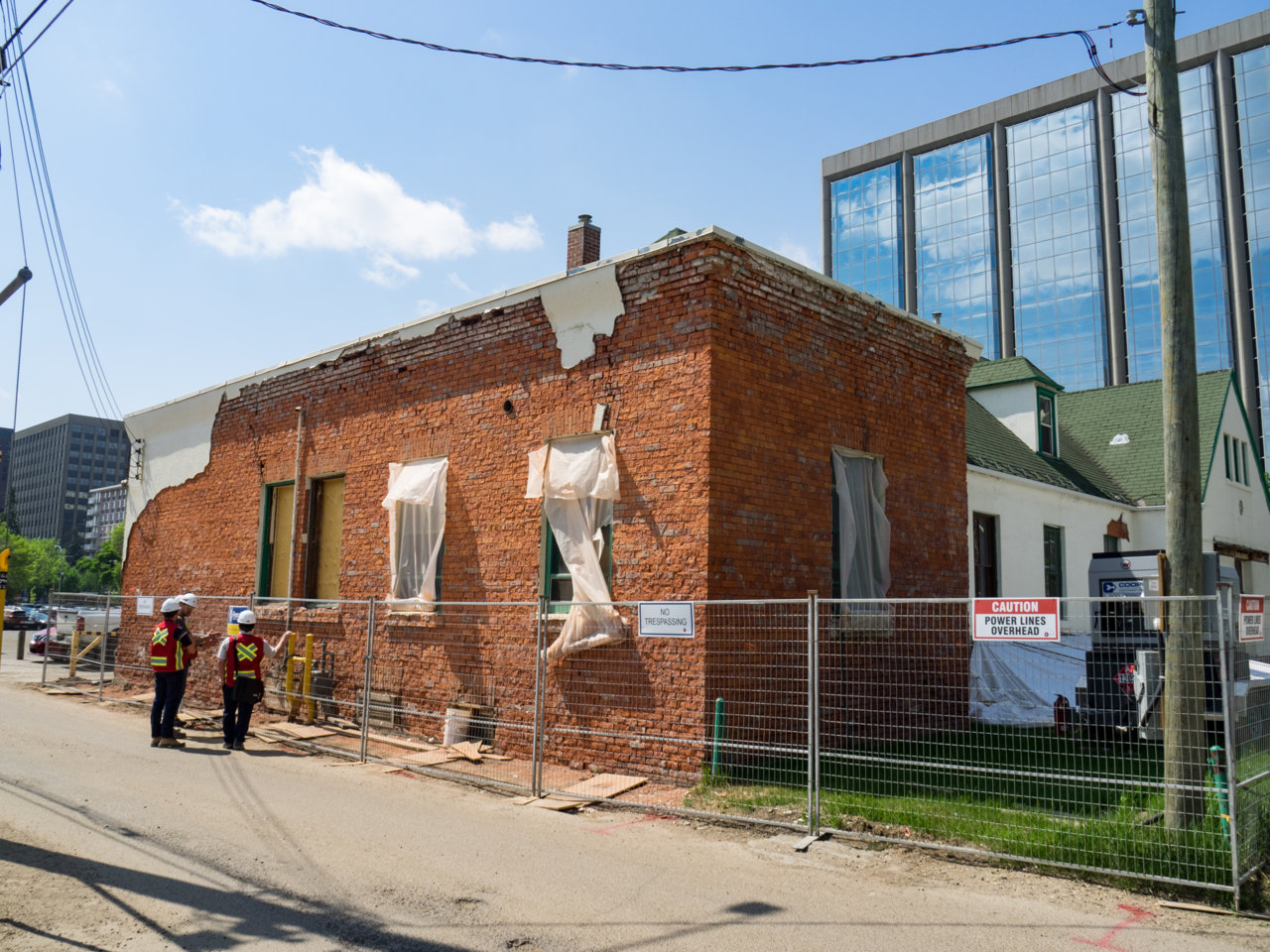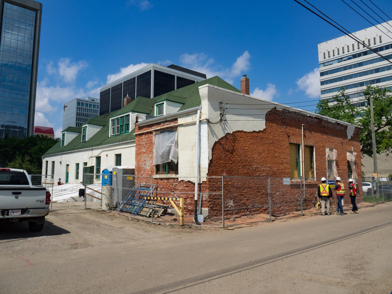 JOB_DESCRIPTION To construct an addition (barrier free accessible washrooms on the main and second floors), and to construct exterior alterations (removing stucco to re-instate the original brick underneath the existing building, new walkways on the north and south side of the building on Site) to an existing Professional, Financial and Office Support Services Use building. (Industrial Health Lab). This scope includes the restoration and rehabilitation of a heritage building and converting it to D occupancy.