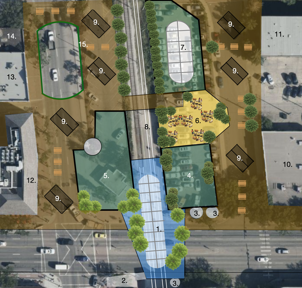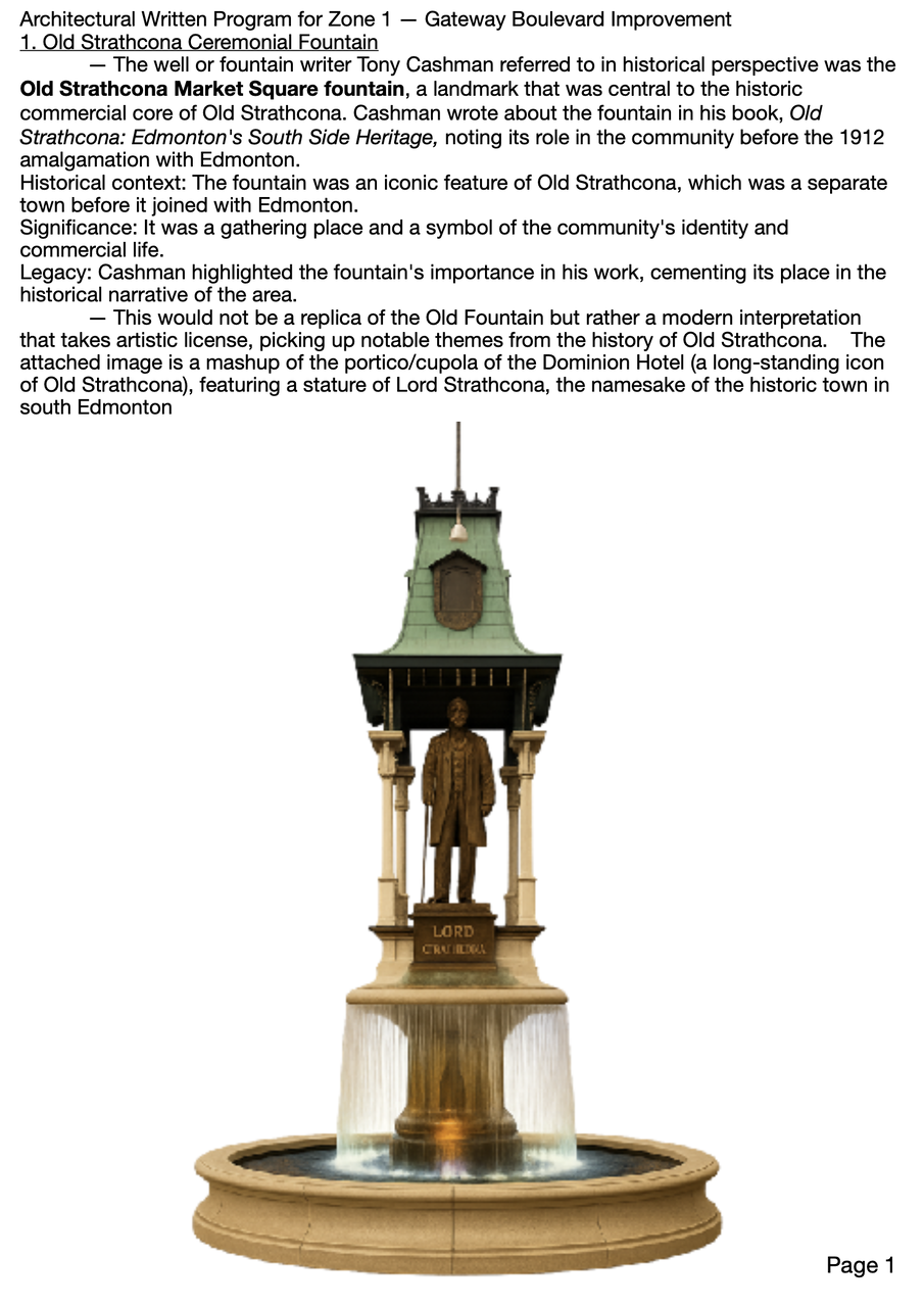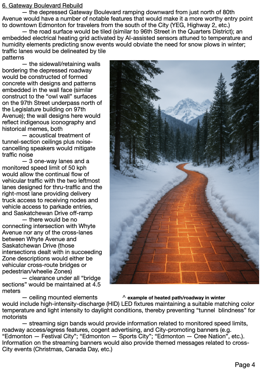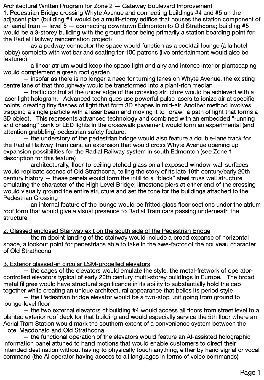Gateway is a major artery into the city. You're saying you want to block it off to pedestrians only?^ In reference to the above map, I submit my thoughts on a written architectural program for Zone 1. While working on Zone 2, I am also going to contact some of the landowners and businesses that would be directly impacted in the Zone 1 effort hoping to get their feedback and support, an outcome that could help to make this a reality.