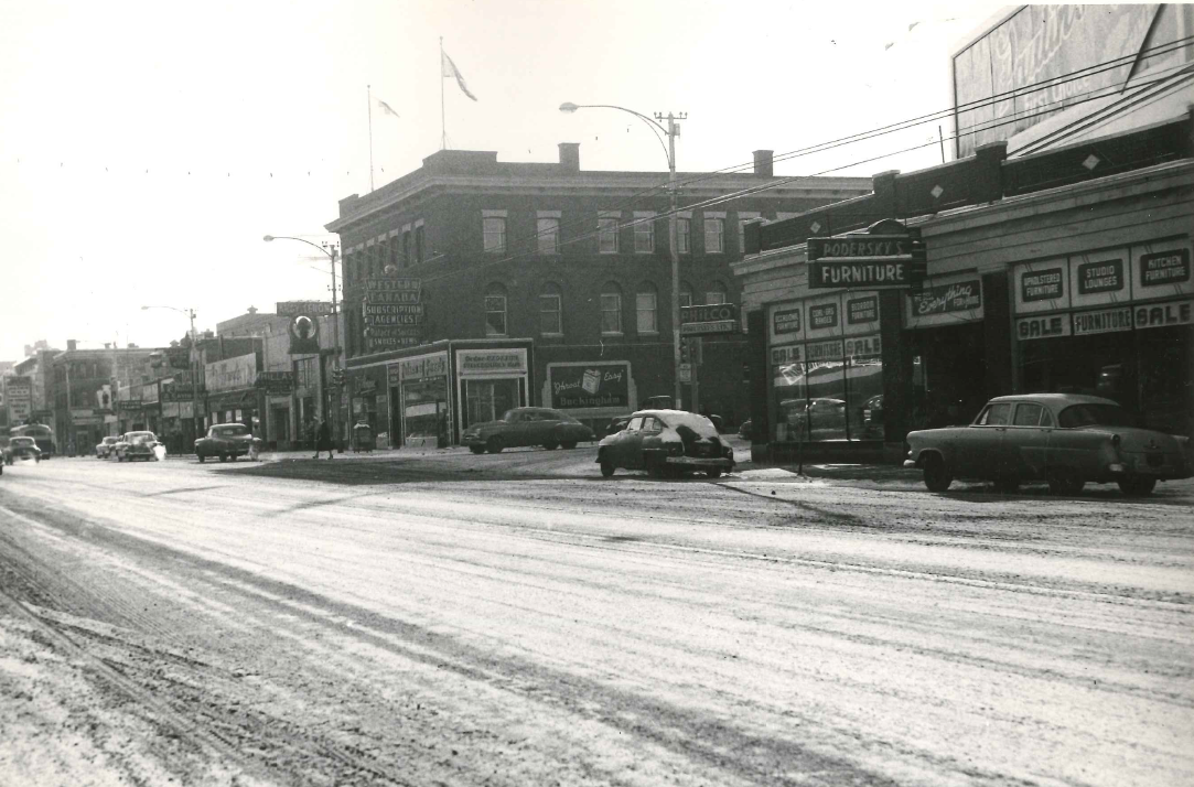- The third photo is looking east down Jasper Avenue towards 104th Street. The three storey brick building on the corner is the Chisholm Block. In the early 20th Century it served as the first home of the Edmonton Public Library; it was demolished around 1965.