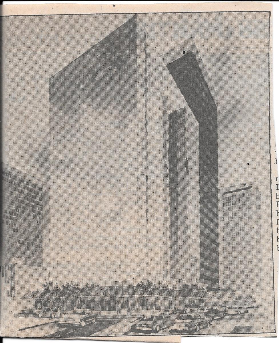 In respect of the Journal building and site, here are a couple newspaper pictures/articles on a blockbuster for the whole block where the Journal and Royal Bank Buildings currently are (between 101/ 102 Streets and Jasper Ave /MacDonald Drive). The Royal Center - a mixed use (office, hotel, retail) development of three towers (40, 31 and 25 storeys). This would have been 1981/1982 ish. The old Journal building was to be torn down with this proposal and a small clock tower at the corner of 101 St and MacDonald Drive was to be built out of the salvaged red bricks.